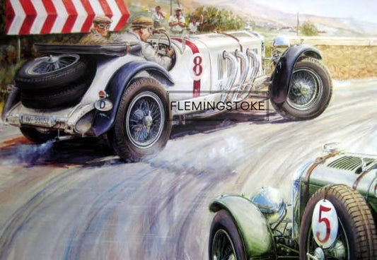 1931 Czechoslovakion Grand Prix - Mercedes SSK vs Bugatti (60 x 33cm)