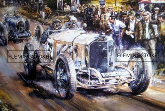 1930 Shelsley-Walsh Hill Climb - Mercedes SSK vs Bentley (60 x 33cm)